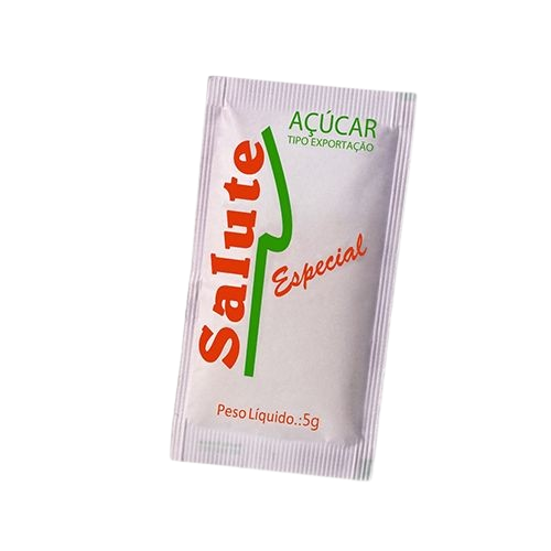 O Açúcar Refinado 400X5G Sachê Salute oferece praticidade para adoçar bebidas e receitas com precisão.